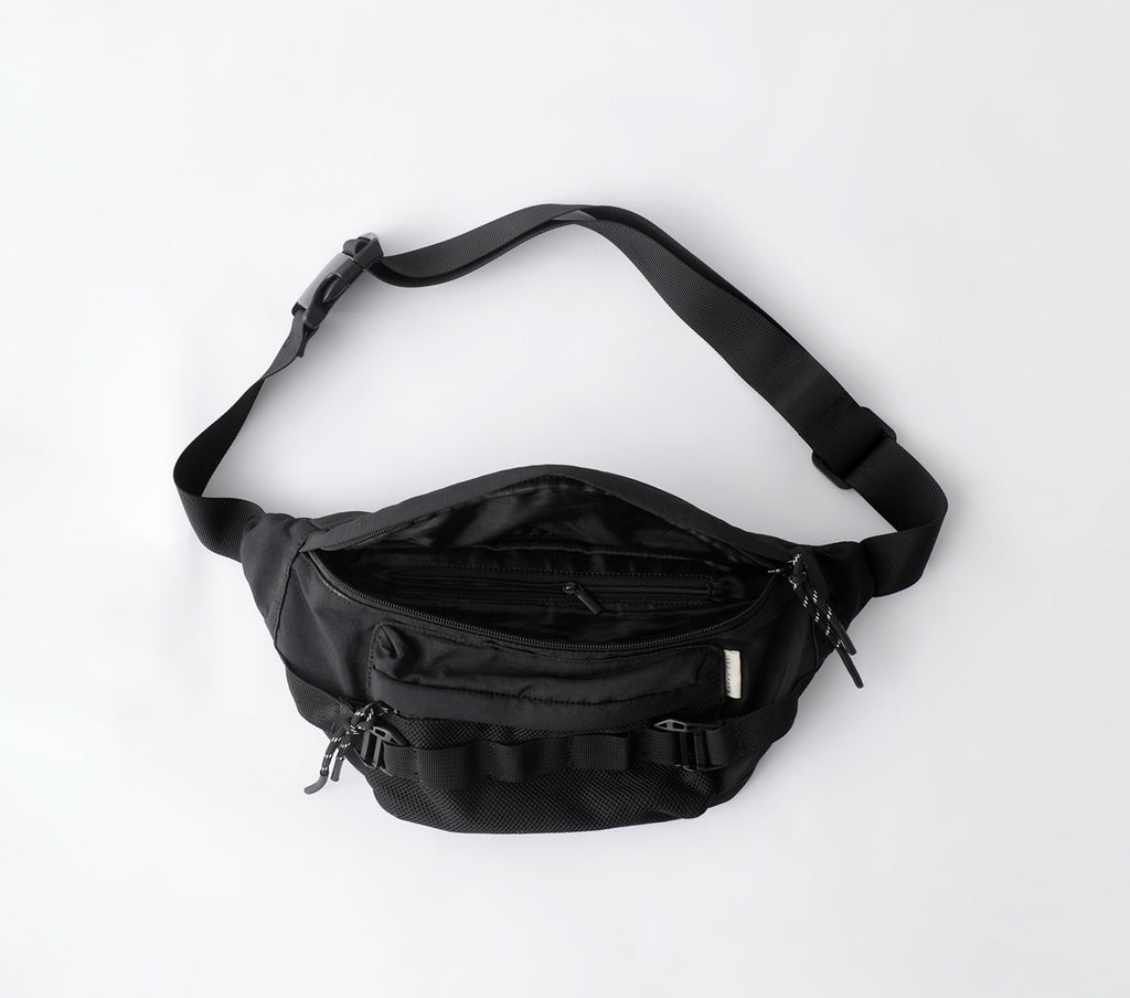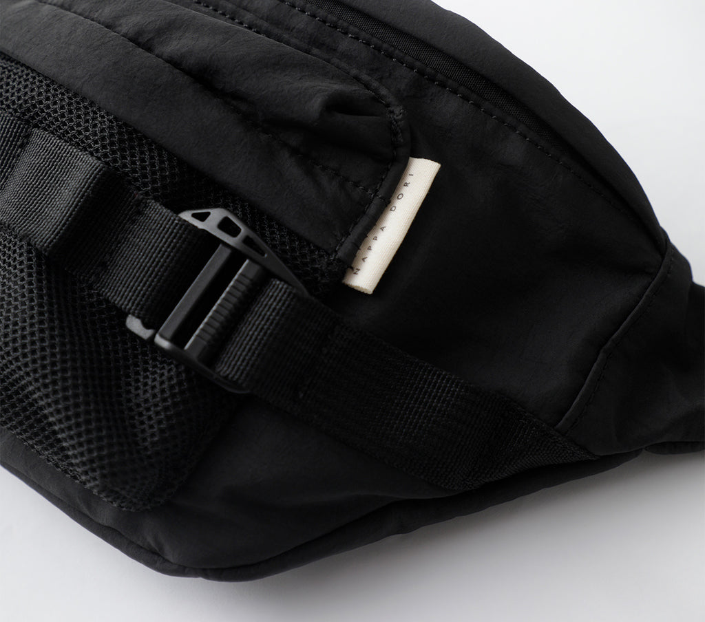 • Featuring a mesh zipper at the front and a zipper pocket at the back, the bag offers organization.