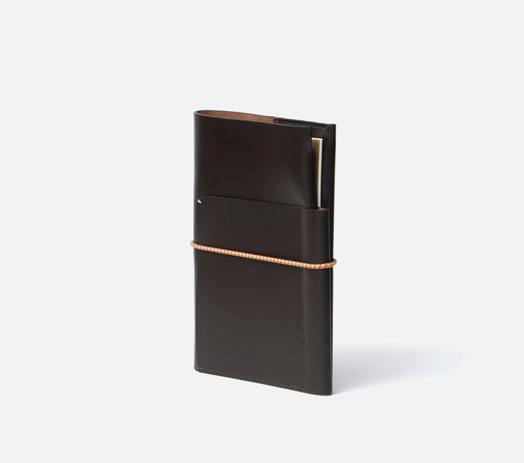 Crafted from authentic leather, the Scribbler by Nappa Dori is created for individuals who jot down notes, plan, and brainstorm while on the move. This organizer is capable of fitting a standard insert for recording your daily activities, combining functionality with a classic charm.