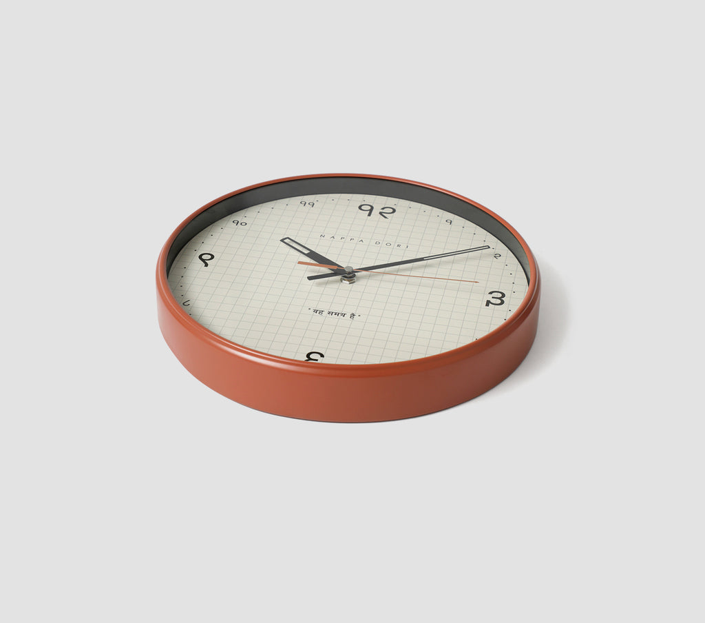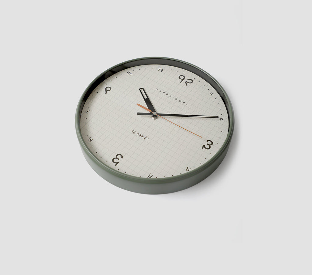 The Wall Clock: Samay Dial by Nappa Dori is a minimalist piece that honors Indian craftsmanship through careful design and attention to detail. It features numerals written in Devanagari script along with the phrase ‘Yeh Samay Hai’ at the bottom, serving as a gentle reminder to be present and mindful, highlighting the fluidity of time. Housed in an elegant metal frame, it combines a vintage feel with contemporary minimalism. This clock is intended for those who value craftsmanship with a meaningful context.