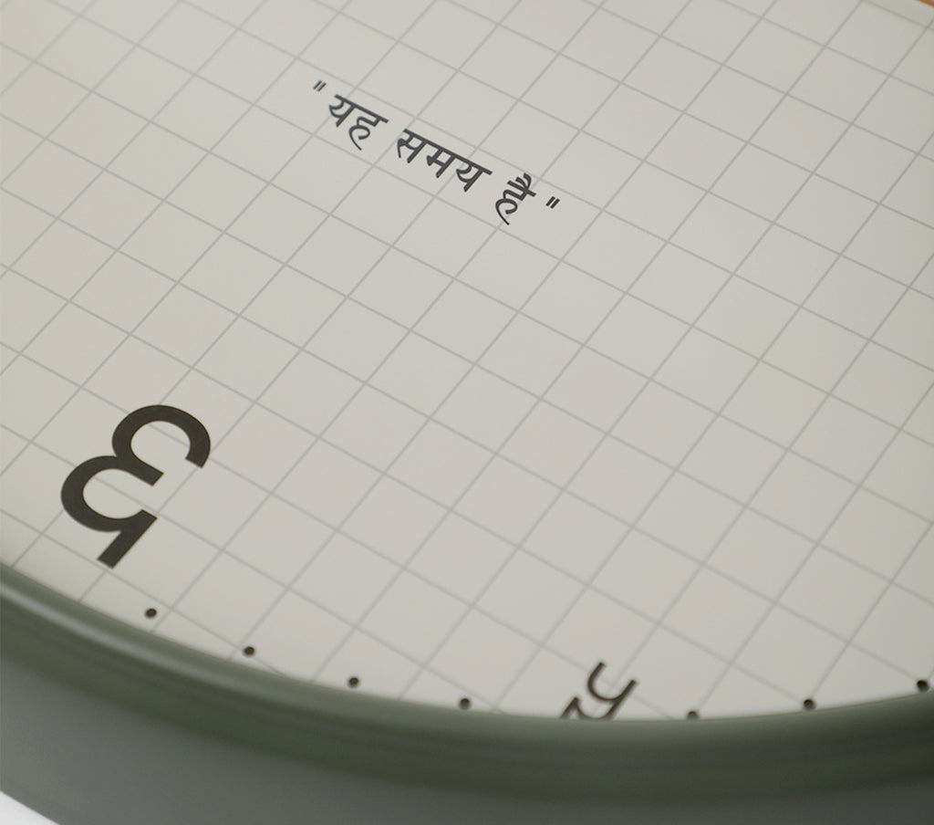 • With the phrase ‘Yeh Samay Hai’ at its base and the numerals inscribed in Devnagari script.